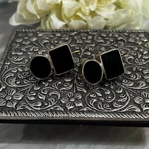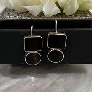 Vintage Taxco AFI Mexico 925 Sterling Silver Black Onyx Modern Stacked Earrings