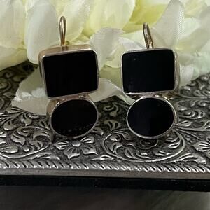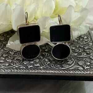 New Vintage Taxco AFI Mexico 925 Modern Style Geometric Stacked Square & Circle Sterling Silver Earrings Featuring Inlaid Onyx. These Stylish Earrings Pair Perfectly With Any Outfit. The Clean Modern Design is Timeless and Classic. The Earrings are Stamped to the Rear with AFI Mexico and 925. Earrings are Approximately .75” in Length.