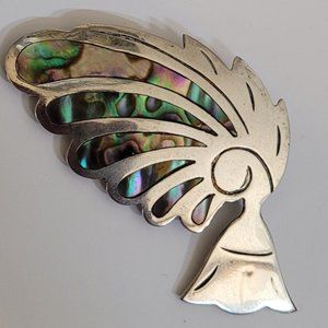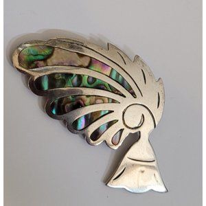 Vintage Taxco Aztec Feather Figural Abalone Brooch Pin 925 Sterling Silver 2"