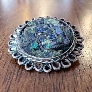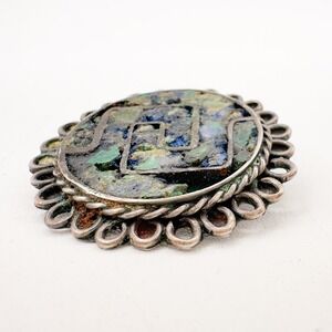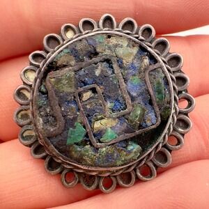Vintage Taxco EVM Sterling Silver Brooch Pendant Crushed Turquoise Inlay c 1940s