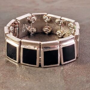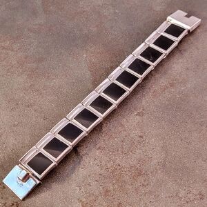 Vintage Taxco Heavy Squares Onyx Sterling Silver Statement Link Bracelet