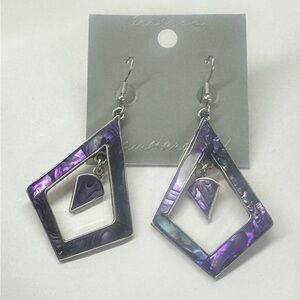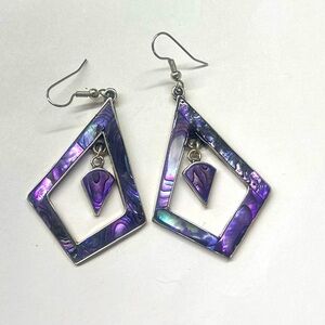 Vintage Taxco Mexican Alpaca Purple Abalone Large Diamond Shaped Earrings