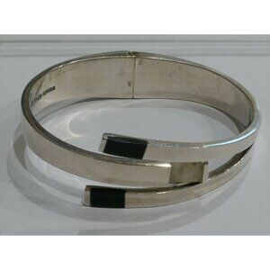 Vintage Taxco Mexican Sterling Silver Hinged Bypass Bracelet - Signed