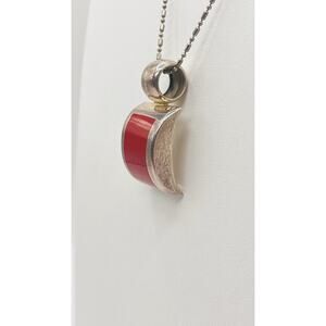 Vintage Taxco Mexico 925 Silver Fancy Link Chain Deep Red Jasper Inlay Pendant