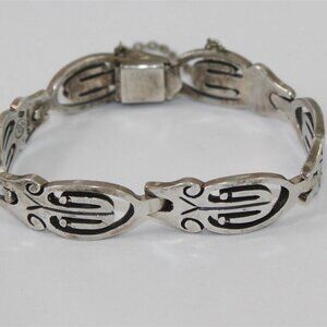 Vintage Taxco Mexico J Sotelo Sterling Silver Link Bracelet 6.75"