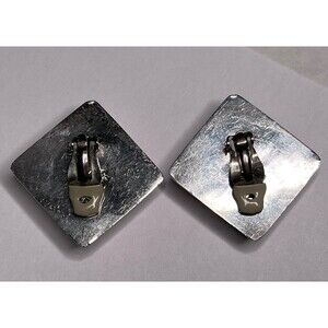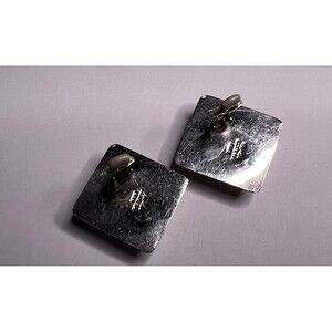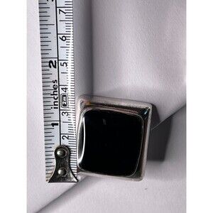 Vintage Taxco Mexico Sterling Silver Onyx Earrings 1.5 In. Square Modernist.