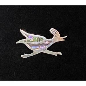 Vintage Taxco Mexico Sterling Silver Roadrunner Brooch with Abalone Shell Inlay