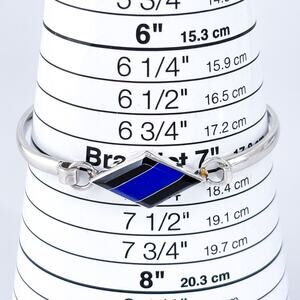 A striking Mexican Taxco bangle bracelet featuring a diamond-shaped lapis and onyx inlay centerpiece set in solid sterling silver.