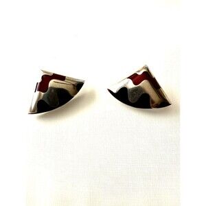 Vintage Taxco Sterling Silver TC-14 Signed Onyx Carnelian Inlay Post Earrings