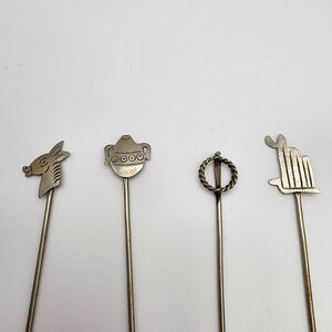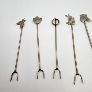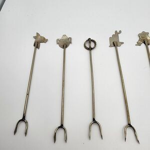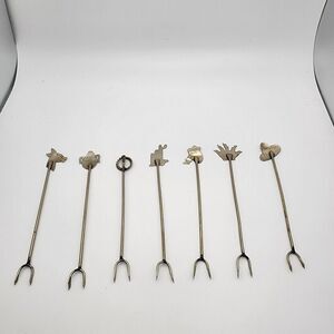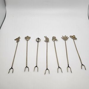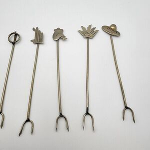 Vintage Taxco set of seven olive or pickle forks for appetizers.