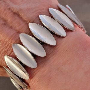 Sterling silver vintage Taxco, Mexico ellipses heavy link bracelet.