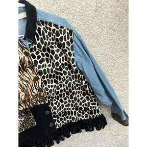Vintage Taylor G Animal Block Print Denim Jacket Size 1X. Overall in good preowned condition with no rips tears or staining.