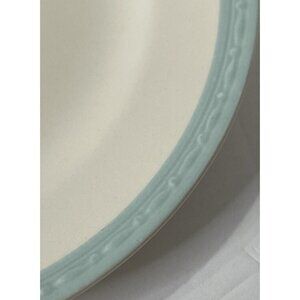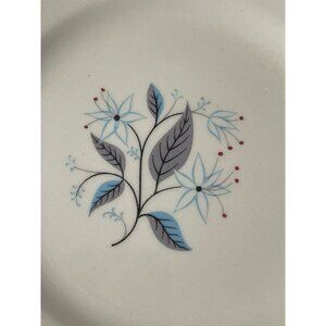 Add a touch of mid-century modern charm to your dinnerware collection with this vintage Homer Laughlin FORTUNE Saucer. The cream-colored porcelain saucer features a beautiful turquoise feather design, hand-painted with intricate details in a round shape. Measuring 6 inches in diameter, it's the perfect size for all occasions. It comes from the United States and was manufactured in 1950 using a pottery production technique.