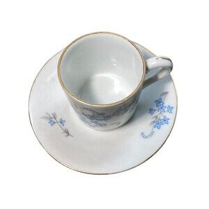 Vintage Tea Cup & Saucer Limoges Demitasse Porcelain Blue Floral Pattern
