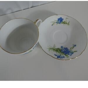 Vintage Tea Cup and Saucer CHINA993 Gold Rimmed Blue Iris Print