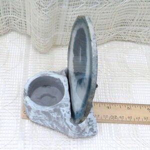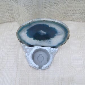 Vintage Tea Light Holder with Blue Agate Geode & Pewter Eagle Americana Souvenir