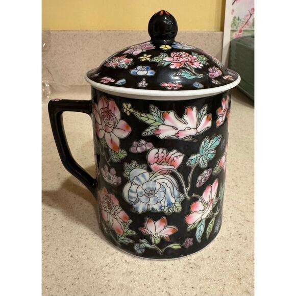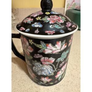 Vintage Tea Mug w/ Lid Zhongguo Jingdezhen Porcelain