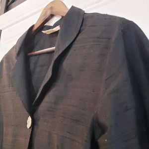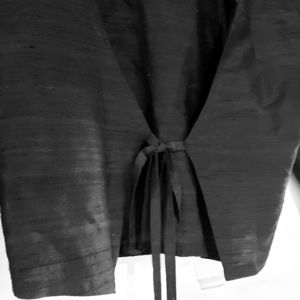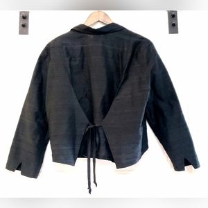 Vintage Tea & Scones Silk Crop Jacket Womens L Black Tie Back 1 Button Top