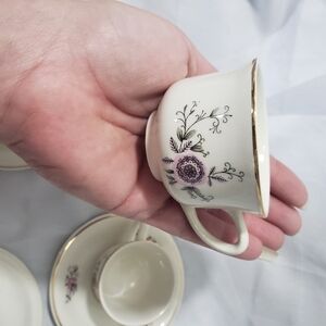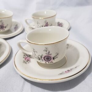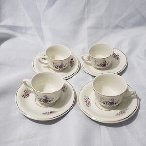 Vintage Tea Set Cups and Saucers Set of 4 Purple Floral Gold Made in Portugal