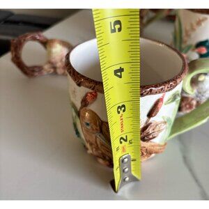✔ 5 Ceramic Mugs with Embossed Quail & Duck Motif