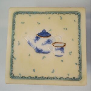 Vintage Tea Time Ceramic Coasters Ivory And Blue With Cork Back Set Of 4
