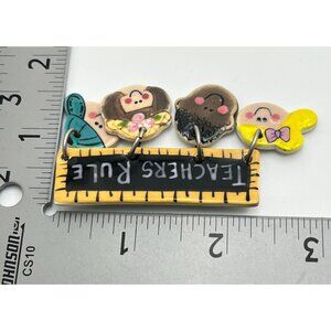 Vintage Teachers Rule Brooch Ruler Pin with Four Dangling Student Faces