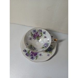 This vintage tea cup and saucer set from Del Mar Japan is a stunning addition to any collection. The intricate floral pattern, hand-painted design, and 24 karat gold accents make this set a true work of art. The bone china material adds to its elegance and quality. This set is perfect for enjoying hot or cold beverages and will transport you to a bygone era with its 1960s style.