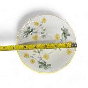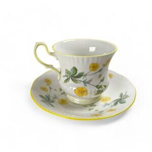 Vintage Teacup Saucer Queens Rosina Fine Bone China Ribbed Footed Yellow Flowers