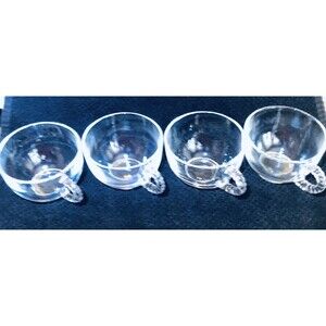 Vintage clear teacups ringed handle great shape Set of 4 Serving Hot Cocoa.