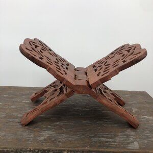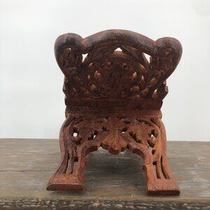 Vintage Teak Wood Book Stand Holder Hand Carved Kitchen Stand Fall Floral Leaf