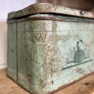 Vintage Teal Chippy Breadbox