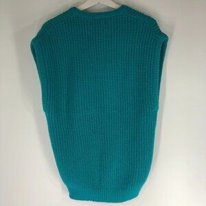 Vintage Teal Chunky Preppy Sweater Vest/Sleeveless sweater. Banded Bottom. Made by Gerard Works. Good vintage condition with some nubbiness to yarn. Please see photos. Approximate measurement: Armpit to Armpit--20" Length 27"