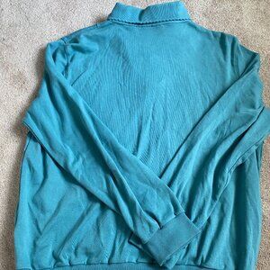 Vintage Teal Floral Embroidered Half Zip Collared Pullover Sweater Size L