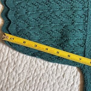 Vintage Teal Green V-Neck Short Sleeve Sweater Pointelle Trim Sleeve Knit XL