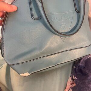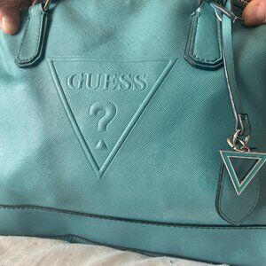Cute and roomy teal Guess bag with plenty of space and handy inside pockets! Can be worn over the shoulder or carried by the handles—super versatile and stylish for everyday use. There’s one small spot of normal wear (pictured), but still in great shape and full of vintage charm!