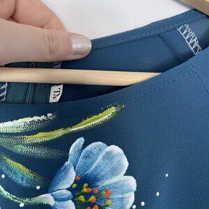 This elegant vintage maxi dress features a hand-painted floral design, adding a touch of artistry to your wardrobe. Wear for a unique and stylish look. Please note marks on the shoulder and sleeve.