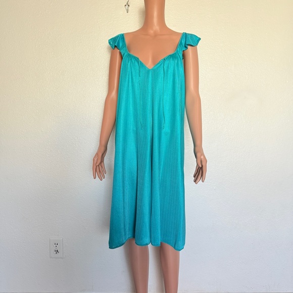 Light and floaty teal plisse nylon nightgown. No tags. Roughly size L