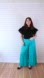 These wide leg pants are made of 2 parts: a sheer overlay, with a solid colored liner. They give the look of a skirt when standing still, and have amazing movement. Full elastic waistband. No pockets.