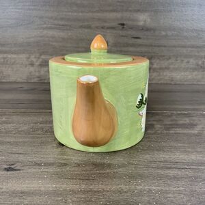 Teapot with Lid Ceramic Green Coral Round Floral Hand Painted Made in China