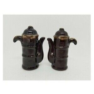 Vintage Teapot TWO SALT Shakers Tea Pots Brown Coffee Kettles VTG 2 Mid Century