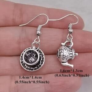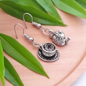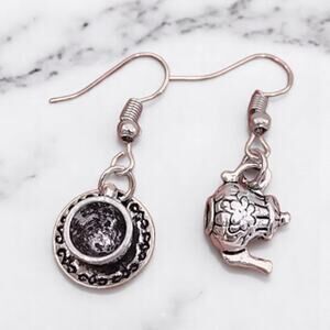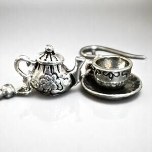 #VintageEarrings #TeapotEarrings #TeacupEarrings #AntiqueSilverJewelry #FloralEarrings #MismatchedEarrings #HandmadeStyle #GiftForHer #HypoallergenicJewelry #TeaLoversJewelry #NWTJewelry #UniqueEarrings #VintageStyle