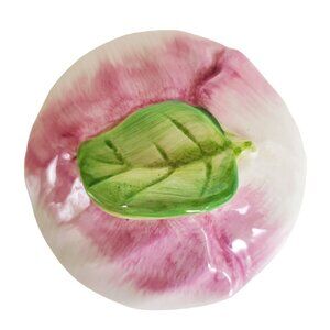 This elegant ceramic teapot is artfully designed to resemble a delicate pink tulip, complete with a green leaf-shaped lid. Its soft pastel hues and intricate petal detailing make it a charming piece for both use and display