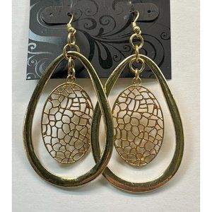 Vintage Teardrop Earrings Gold Tone Filagree Floating Retro Dangle