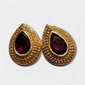 #GoldtoneEarrings #TeardropJewelry #PurpleGlassEarrings #VintageStyle #ClipOnStyle