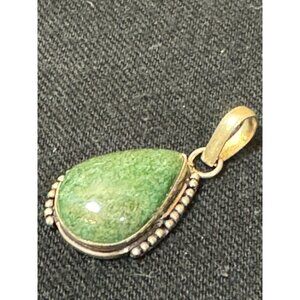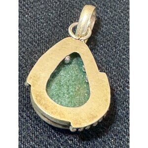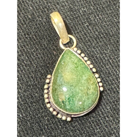 Vintage Teardrop Green Stone Pendant With Intricate Silver Accents