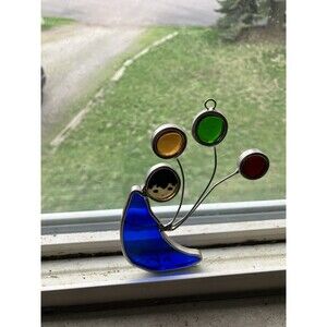 Vintage Ted De Grazia Sun Catcher Stained Glass Window Hanging Boy With Ballon’s