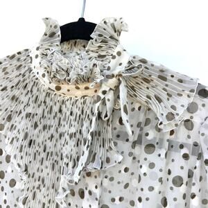 Vintage Ted Lapidus Paris Haute Couture Polka Dot Sheer Ruffle Pleated Blouse 36