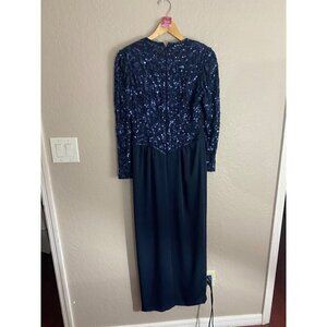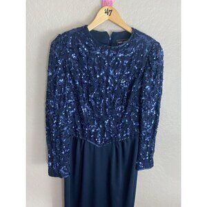 Vintage Ted Lapidus Paris Women's Blue Long Sleeve Sequin Dress - 10