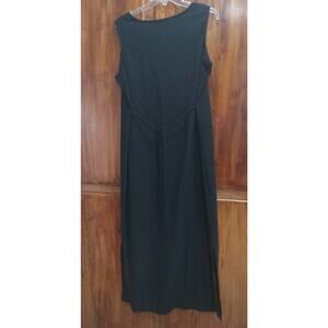 Vintage Teddi Floral Embroidered Black Sleeveless Maxi Dress Women's L 14 Crepe