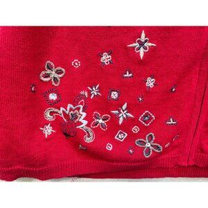 Vintage Teddi Knitted Cardigan Sweater Size M Red Embroidery Floral Full Zip NWT